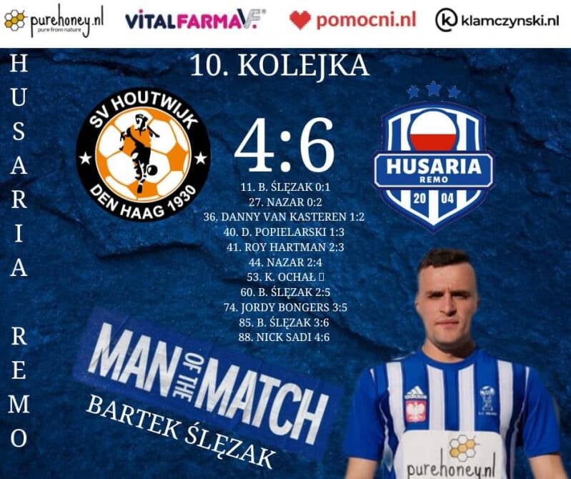 Wiedzieliśmy, że nawet w 10 wyglądamy bardzo dobrze na boisku i walczyliśmy dalej. W 85 minucie fantastycznie technicznym strzałem na 3-6 wynik podwyższa BARTEK ŚLĘZAK i zapisuje sobie Hattricka. Gospodarze trafiają bramkę w 90 minucie i chwile później sędzia kończy mecz. Wygrywamy na wyjedzie 4-6 !!! Brawo drużyna